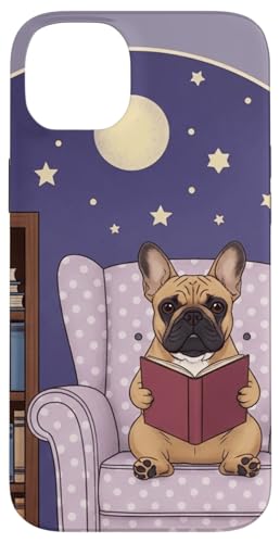 Bibliothèque au Clair de Lune Bouledogue français Lecture Coque pour iPhone 14 Plus