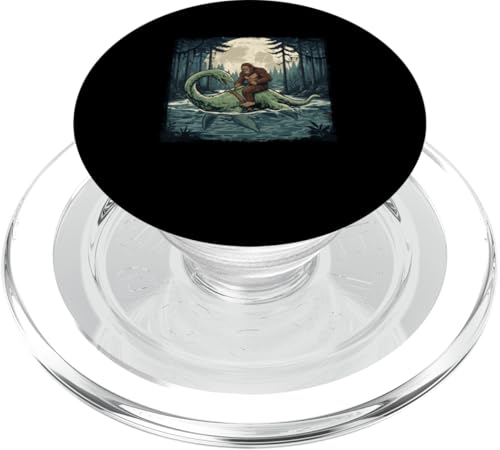 Bigfoot chevauchant Le Monstre du Loch Ness au Clair de Lune sur Le lac Cryptid PopSockets PopGrip pour MagSafe