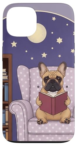 Bibliothèque au Clair de Lune Bouledogue français Lecture Coque pour iPhone 13