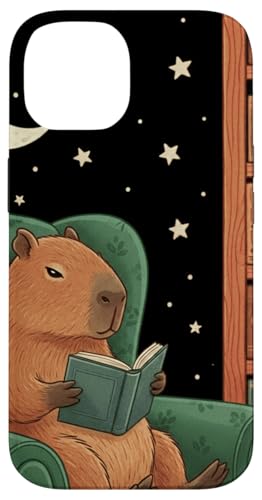 Capybara au Clair de Lune lisant dans la Nuit de la bibliothèque Coque pour iPhone 13