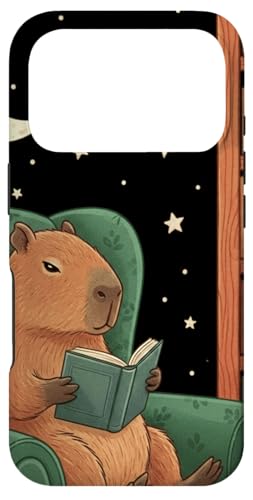 Capybara au Clair de Lune lisant dans la Nuit de la bibliothèque Coque pour iPhone 17 Pro