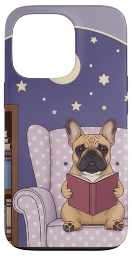 Bibliothèque au Clair de Lune Bouledogue français Lecture Coque pour iPhone 13 Pro