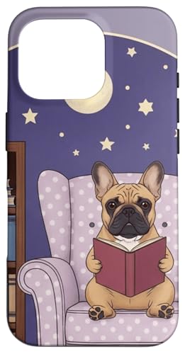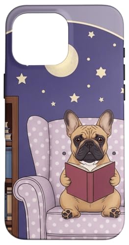 Bibliothèque au Clair de Lune Bouledogue français Lecture Coque pour iPhone 16 Pro Max