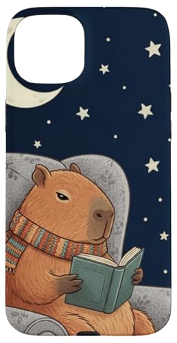Capybara Mignon lisant sous Le Ciel de bibliothèque au Clair de Lune Coque pour iPhone 15 Plus