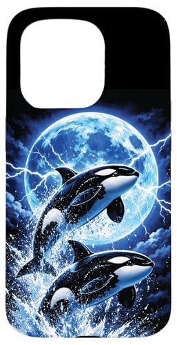 Baleines sautant au Clair de Lune Coque pour iPhone 15 Pro