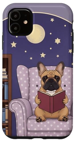 Bibliothèque au Clair de Lune Bouledogue français Lecture Coque pour iPhone 11