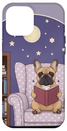 Bibliothèque au Clair de Lune Bouledogue français Lecture Coque pour iPhone 12 Pro Max