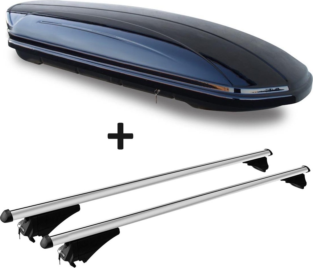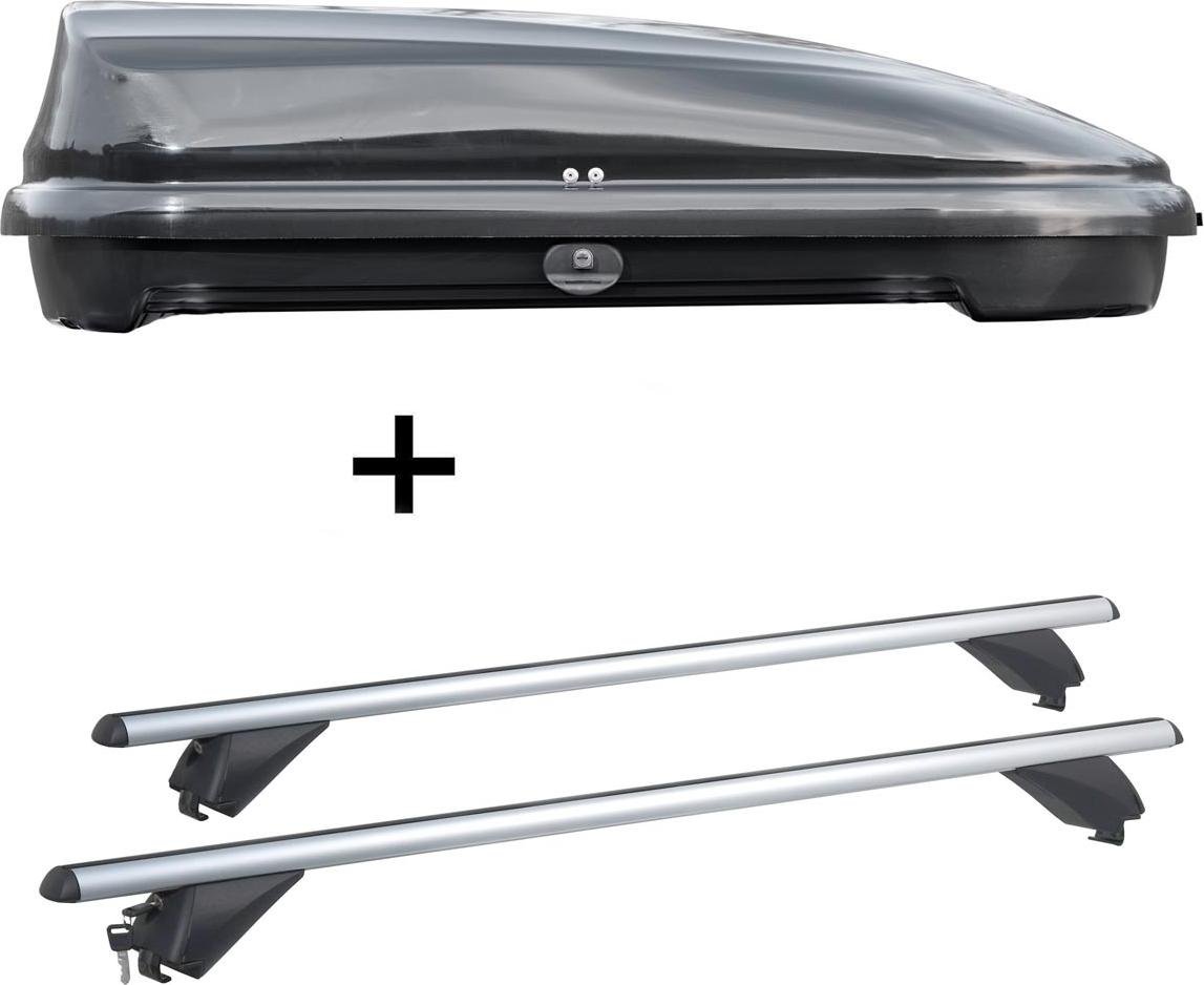 Coffre de toit JUEASY300 300Ltr noir + barres de toit Tiger Alu XL compatibles avec Audi Q3 8U ab 11