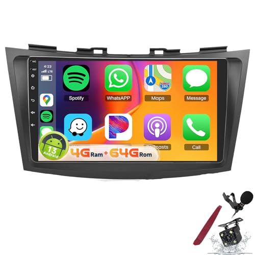 PLKEQS 4G 64G pour S-uzuki Swift 4 2011-2015 Radio Stéréo Voiture avec DSP/32EQ CarPlay sans Fil Android Auto Radio Voiture Écran Tactile 9" 1280P Bluetooth 5.0 GPS WiFi FM/RDS SWC Caméra,K4 Pro