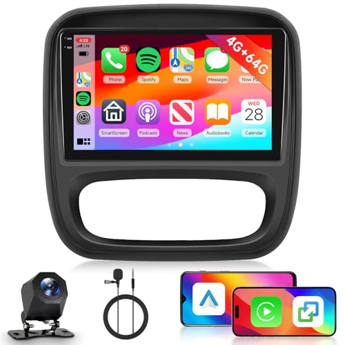 Hodozzy 4G+64G Autoradio pour Opel Vivaro B 2014-2018/ Renault Traffic 3 2014-2021 Android Écran Tactile 9 Pouces GPS Carplay Android Auto sans Fil, Radio Voiture 2 Din Bluetooth DSP WiFi RDS Caméra