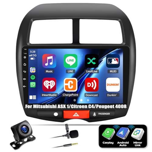 4G+64G Autoradio pour Mitsubishi ASX 1/Citroen C4/Peugeot 4008 avec Carplay sans Fil Android Auto, 10 Pouces Ecran Tactile Android 13 Auto Radio Voiture avec BT GPS WiFi Mirror Link FM/RDS EQ SWC