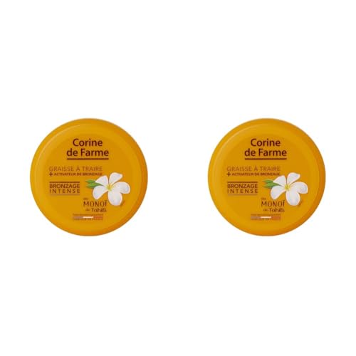 Corine de Farme - Graisse à Traire Bronzage Intense - Huile Bronzante - Bronzage Intensifié Sans Autobronzant - Monoï de Tahiti, Parfum des Îles - Pot 150 ml (Lot de 2)