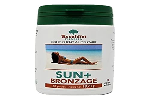 Accélérateur de Bronzage Sans Autobronzant - SUN + 60gélules -Carotte, Bourrache, Vitamine A, Beta Carotene, Vitamine E - Fabriqué en France