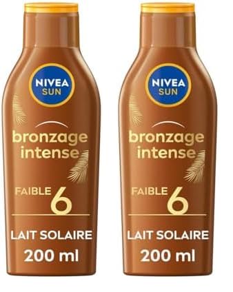 NIVEA SUN - Lait Solaire Bronzage Intense FPS 6 - Protection & Teint Hâlé - Extrait De Carotène & Vitamine E - Sans Autobronzant - Formule Légère & Non Grasse - Peaux Normales - 200 ml (Lot de 2)