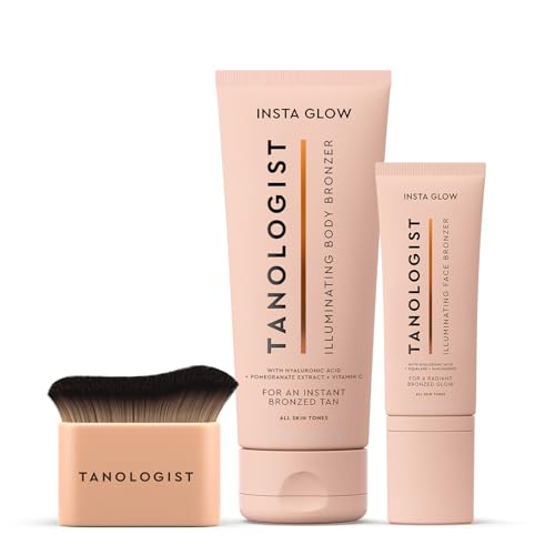 Tanologist Instaglow Face + Tanologist Instaglow Body + Tanologist KABUKI Pinceau Visage & Corps Applicateur Autobronzant pour une finition à l’aérographe