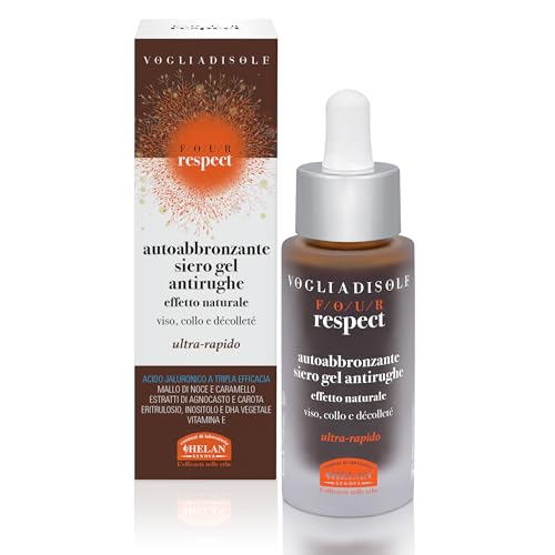 Helan, Vogliadisole Respect - Sérum gel autobronzant anti-rides à l'acide hyaluronique avec vitamine E, inositol et gattilier, autobronzant pour un bronzage naturel et lumineux, 30 ml