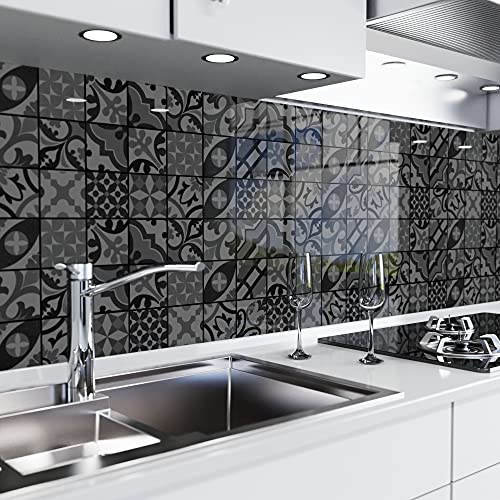 danario Crédence Adhésive pour Cuisine - Panneau Mural décoratif Autocollant | Protège Mur Cuisine | Décoration Aspect Mat | 0,40 mm - Carreaux de mosaïque Sombres - 60cm x 220cm