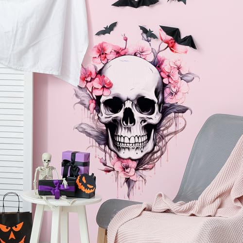 Stickers Muraux Crâne De Rose Autocollant Mural Sticker Mural Pour Chambre Salon Mur,Autocollant Decoratif Mural, Chambre Enfants Bébé Pépinière,Decoration Chambre Adulte