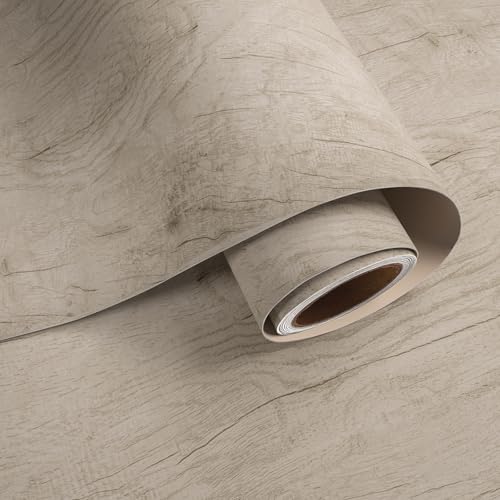 Papier peint autocollant effet bois 3 x 045 m - PVC imperméable auto-adhésif (Beige)