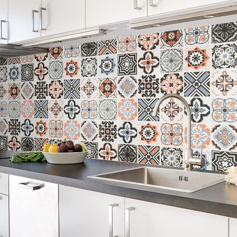 Ambiance Sticker Adhésifs Carrelages Autocollant Ornements Mosaïque Carreaux de Ciment Carrelage Sticker Mural Salle de Bain et Cuisine | 24 Pièces de 10 x 10 cm