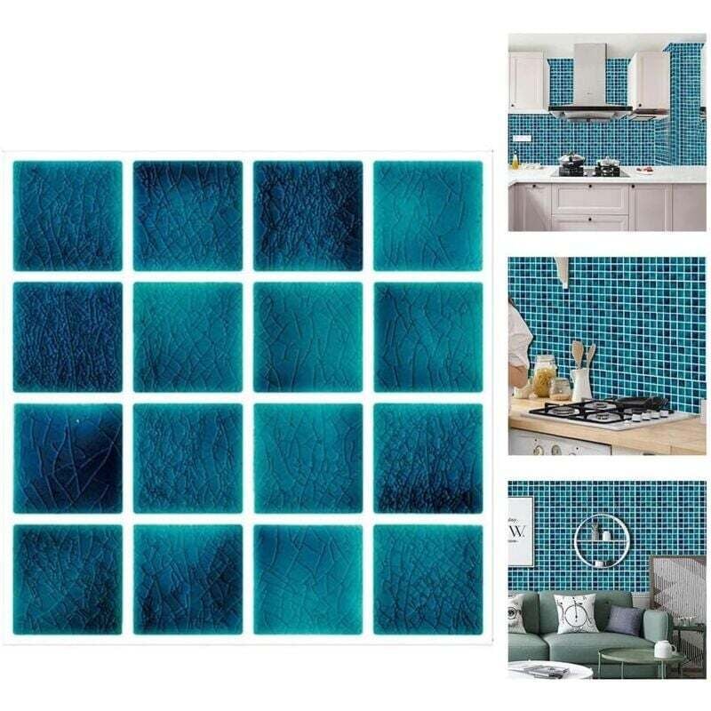 20PCS Stickers Carrelage Auto-Adhésif Autocollant Fond D'écran Étanche Autocollant Carreau Décor Mosaïque (Bleu,10 x 10 cm)