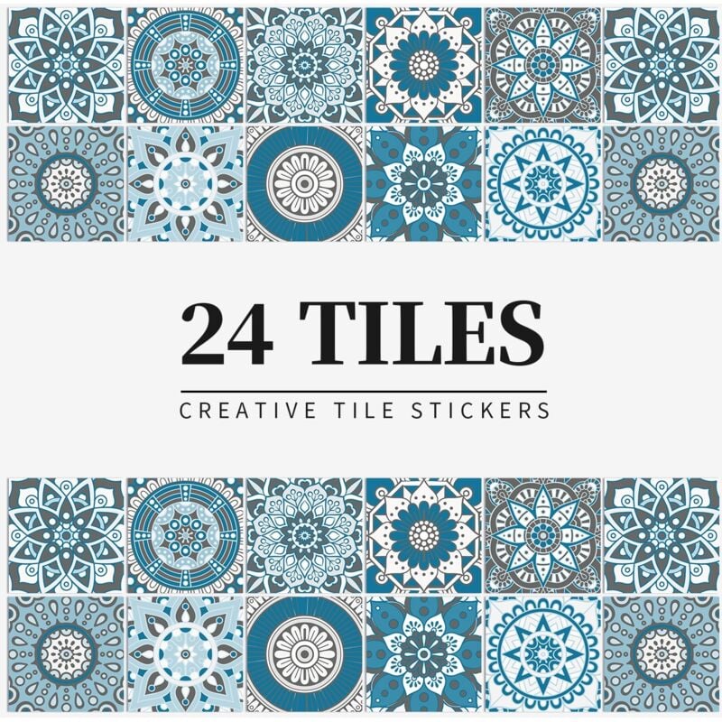 HORIWE Autocollant de carrelage Mosaïque Carreau mural Autocollant 24 pièces PVC Carrelage Maroc autocollant Papier peint étanche Autocollant mural pour cuisine,armoire,meuble,table