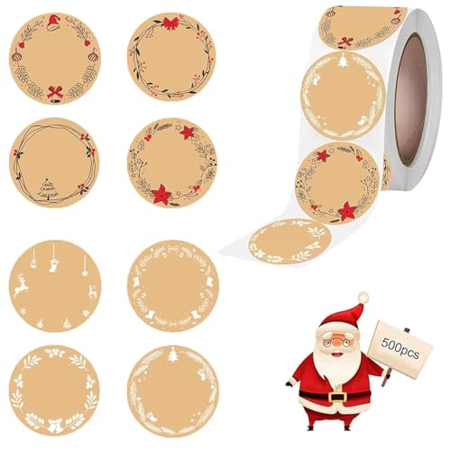 Feliciay 500 pièces Gommettes Noël, Rouleau D'autocollants de Noël Etiquette Autocollantes Noel Merry Christmas Etiquette Autocollantes Noel Autocollant Papier Kraft pour Cadeaux Enveloppes(B)