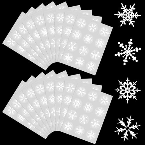 Becellen 12 Feuilles Noel Autocollant, Blanc Flocon Neige Autocollants Noël Rondes Ahésives Stickers pour Vacances Cadeau Décorations
