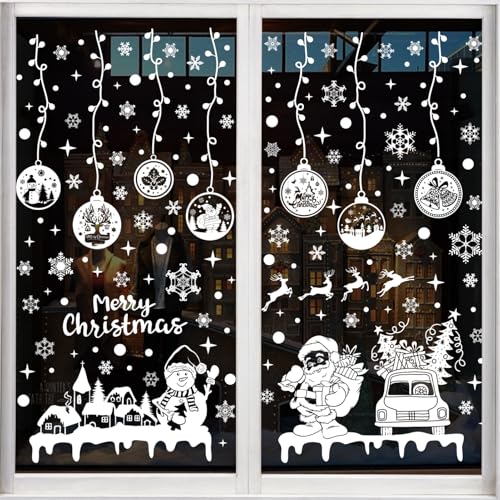 Nepfaivy Stickers Autocollant Noel Fenetre - 202 Pcs Blanc Stickers Noel Vitre Réutilisable, Noël Autocollant pour Fenetre Père Noël Flocons, Decoration Interieur Maison Vitrine Verre