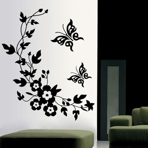 TOARTI Rose Stickers Cuisine,Noir Fleur Vigne Stickers Muraux,Réfrigérateur en PVC Papillon Autocollant Murales,Art Décor pour Placard Maison Cuisin