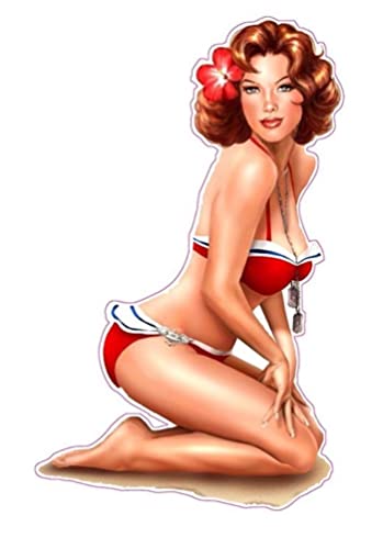 hotrodspirit - Sticker Extra Fin pin up rousse en Nuisette doré Sexy Autocollant Style Retro Vintage