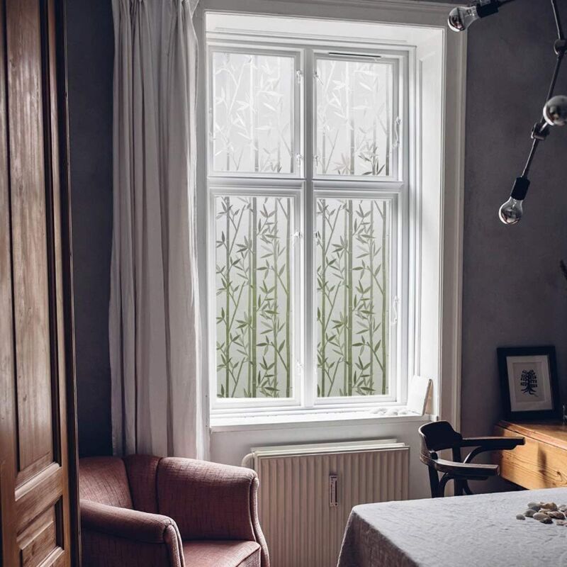 Film Fenêtre Statique Film vitre Autocollant Film Occultant Film Fenetre Anti Regard Dépoli Cuisine Bureau Salle de Bains 45 x 200CM(Bambou chanceux )