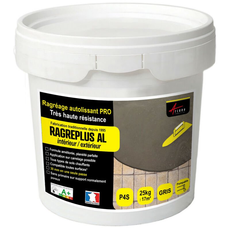 Arcane Industries - Ragréage autolissant et autonivelant, pour sol et carrelage - 25 kg (jusqu'à 17m² pour 1 mm d'épaisseur) Gris
