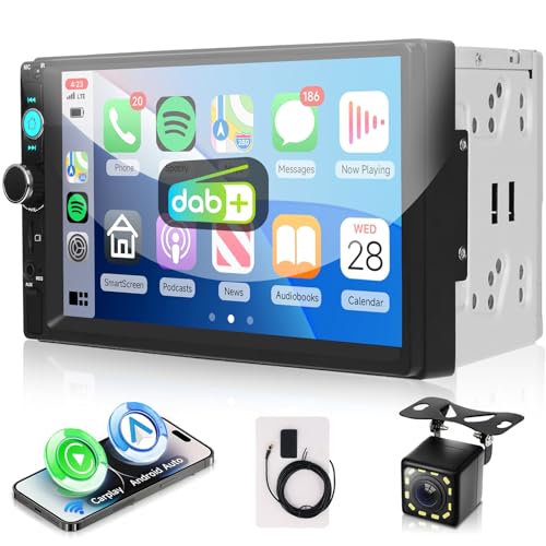 VECHTEL Dab/Dab+ Autoradio 2 Din avec Carplay Android Auto sans Fil, 7 Pouces IPS HD Écran Tactile Poste Radio Voiture Soutien Bluetooth 5.2 Radio FM EQ USB/AUX Mirror Link SWC Caméra de Recul