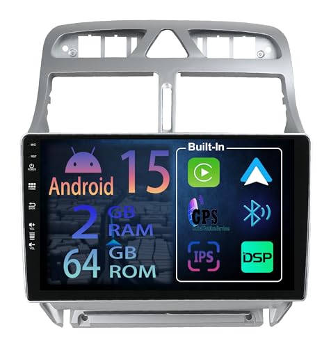 【2+64GB】 9 Pouces Android 15 Autoradio pour Peugeot 307 2007-2013 Radio Carplay Stéréo sans Fil Car Play GPS Auto Navi L'écran Bluetooth Navigation Player Écran Tactile FM SWC RDS