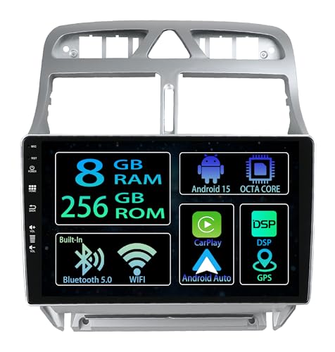 Android 15 Autoradio,pour Peugeot 307 307CC 307SW 2002-2013, 9 Pouces Écran Tactile Lecteur Auto Stéréo avec CarPlay Android Auto/WiFi/Navigation GPS/Bluetooth/DSP(B,F 8core(8G+256G))
