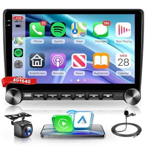 ATOTOZONE X10DG209E 9" QLED Dab Autoradio Android 2 Din, 8+128G, Carplay sans Fil & Android Auto, 4G LTE, Assistant Vocal IA, Suivi GPS, Microphone Double & BT & Entrée caméra, LRV, Entrée HDMI
