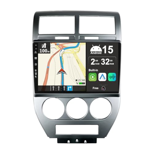 JOYX Android 15 IPS Autoradio Pour Jeep Compass 1 MK (2006-2010) - 2G+32G - Sans fil Carplay + Android Auto - Caméra arrière GRATUITES - 2 Din 10.1 Pouce - Dab Volant BT WLAN 4G Fast-boot Split-Screen