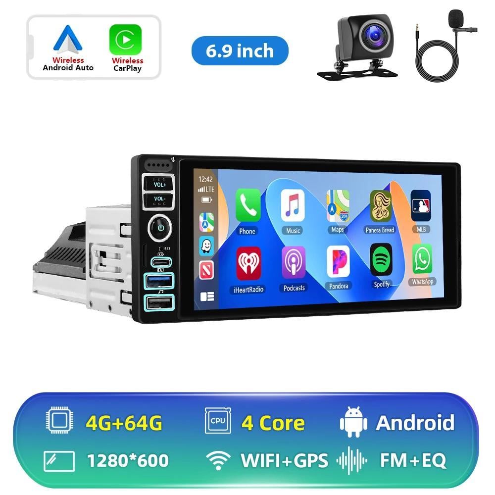 8 cœurs 4Go+64Go Android 14 Autoradio Stéréo GPS Navigator Universal 1 Din DVR Lecteur CD/DVD CarPlay sans Fil Android Auto WiFi DSP RDS 4G Bluetooth 5. 0 Écran Tactile