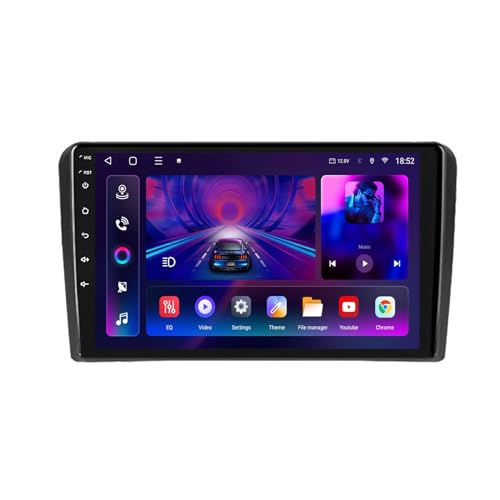 2+64GB Android Autoradio pour Audi A3 8P 2003-2012/S3 2006-2012/RS3 2011-2012 Wireless Carplay Android Auto 9 Pouces Ecran Tactile Bluetooth Poste Radio Voiture avec Caméra de Recul, GPS, WiFi, FM RDS