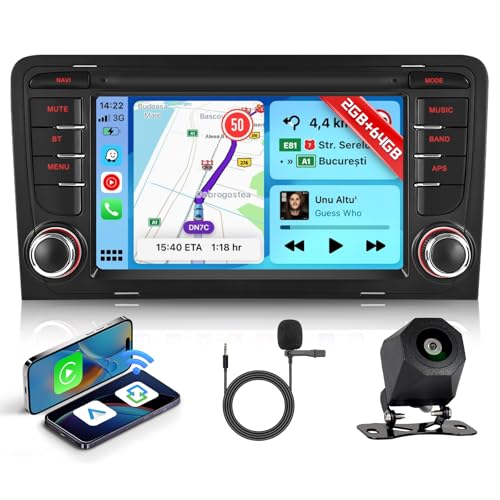 2GB+64GB Android Autoradio pour Audi A3 8P 2003-2012 S3 2006-2012 RS3 2011-2012 avec Carplay Android Auto, Hodozzy 7 Pouces Écran Tactile Radio 2 Din avec GPS WiFi Bluetooth DSP FM/RDS Radio+Caméra