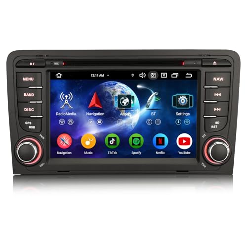 Erisin 7" écran Tactile 4Go+64Go 8 Cœurs Android 14 Autoradio pour Audi A3 S3 RS3 RNSE-PU Stéréo avec GPS Navigateur sans Fil CarPlay Android Auto WiFi 4G USB DVD Bluetooth 5.0 DSP Dab+ FM Radio TPMS