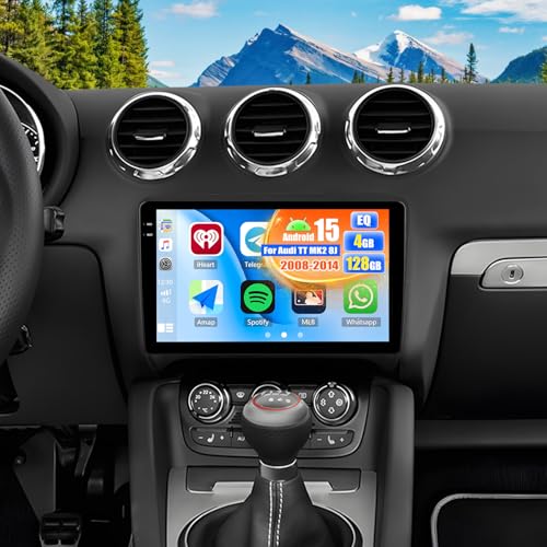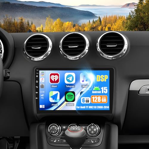 OiLiehu 6G+128G/8 Cœurs Android 15 Autoradio pour Audi TT MK2 8J 2008-2014 avec CarPlay Android Auto sans Fil, 9“ IPS Écran Tactile avec Lien Miroir GPS WiFi Bluetooth FM/RDS DSP EQ SWC Caméra