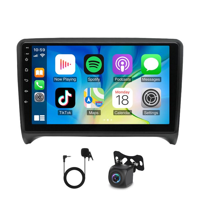 Autoradio Android 4G pour Audi TT MK2 (2008-2014), écran Tactile IPS 9", 64 Go, CarPlay et Android Auto, Format 2 DIN, Wi-FI, Bluetooth, Radio FM RDS, égaliseur, Commandes au Volant, caméra