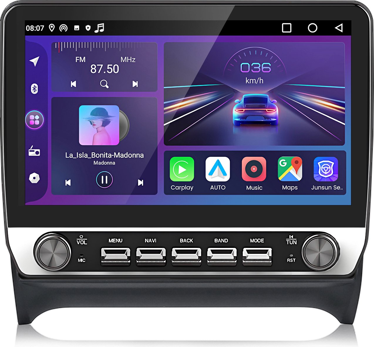 Autoradio Double DIN à écran Tactile 9 Pouces pour Audi TT MK2 (2008-2014), avec CarPlay sans Fil, Android Auto, Bluetooth, caméra de recul, Commandes au Volant et système de Navigation.