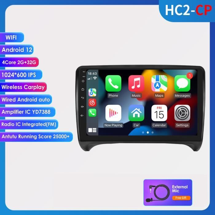Autoradio Android 4G 15 Pouces pour Audi TT MK2 8J (2008-2014), écran Tactile IPS 9 Pouces, CarPlay et Android Auto, 64 Go, Wi-FI, Bluetooth, Radio FM RDS, égaliseur, Commandes au Volant, ca