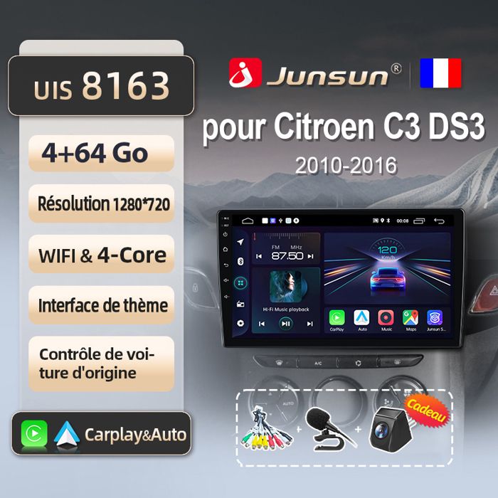 Autoradio Junsun - NOBRAND - Citroen C3 DS3 - 4Go RAM - 64Go Stockage - WIFI Carplay GPS