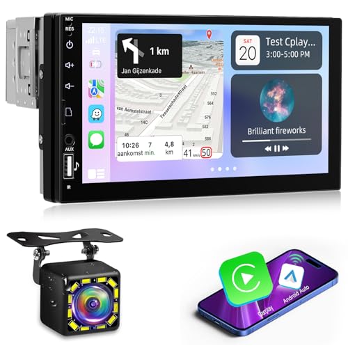 Autoradio 1 Din avec Écran Compatible Apple Carplay et Android Auto, Radio pour Voiture Tactile 7 Pouces avec Bluetooth/Lien Miroir/Radio FM/Commande au Volant + Caméra de Recul et Cadre