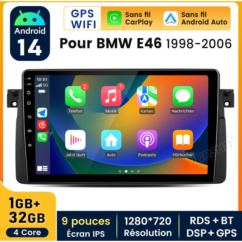 Android13 carplay Für bmw e46 Autoradio 3er 1998-2006 2+64G GPS Navi BT WIFI DAB+ SWC RDS mit camera