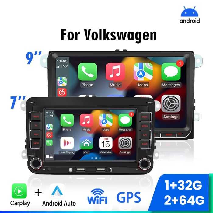 ESSGOO Autoradio 7" Android 14 4G+64G Apple Carplay GPS NAVI WIFI RDS FM Bluetooth pour VW Golf 5 6